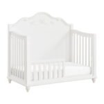 Adorn your child’s nursery with the traditional style of the Alana Crib with Guardrails. Framing of solid poplar wood provides durability, while the crisp, white finish makes this piece easy to pair with various color palettes and existing nursery pieces. Three adjustable base heights enhance longevity, allowing extended use as your child grows. Decorative molding and bun feet add delicate stylistic touches that anchor this piece in timeless elegance. The Alana Crib with Guardrails is a practical, quality, and stylish addition to your child’s nursery.