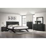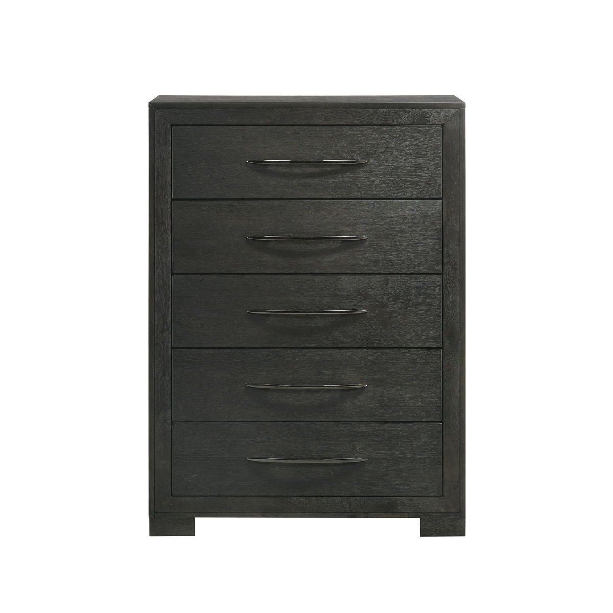 Introducing the Allan 5-Drawer Chest, a sleek and modern addition to your bedroom. With its clean-line design and wood grain black finish, this chest exudes contemporary fashion. The chrome handles add a touch of sophistication to the overall look. Crafted with quality materials, this chest is built to last and is perfect for those who appreciate minimalist aesthetics and high-quality design.