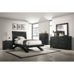 The Allan Bed is a modern and sleek addition to any bedroom. With its clean edge design and wood grain black finish, this platform bed offers a contemporary look that will complement any décor style. The arched base is a standout elegant feature, while the sleek panel headboard provides both comfort and style.