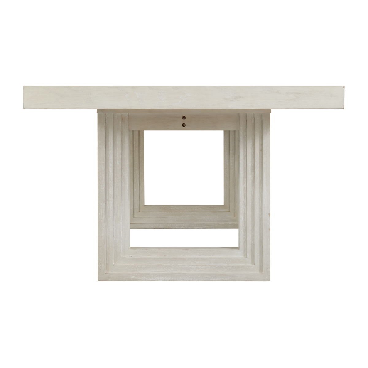 Introducing the Avalanche Dining Table, a centerpiece of modern elegance and versatility. This table features an 18″ leaf, extending from 74″ to 92″, ensuring ample space for gatherings. Adorned with raised geometric patterns and finished in antique white, it exudes contemporary sophistication. The double U-shaped base not only provides sturdy support but also adds a stylish flair to any dining room. Perfect for everyday dining or hosting special occasions, this table blends functionality with a sleek, modern design. Elevate your dining area with the Avalanche Dining Table, where form meets function seamlessly.