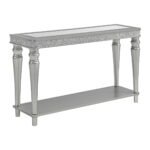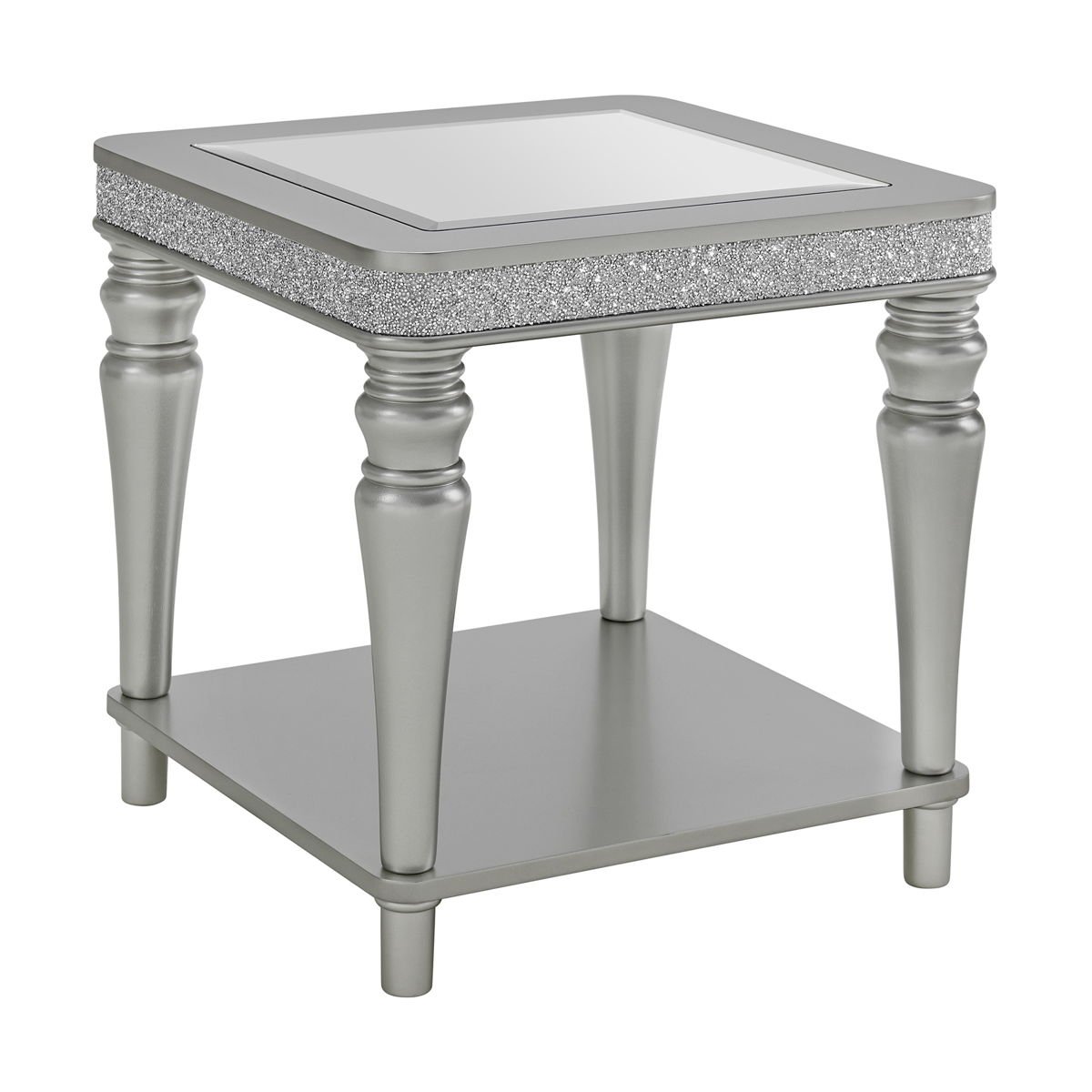 Accent your living space with the glamourous style of the Avril Occasional Table Set. Accented with mirror plates, the tabletops spacious surfaces are complemented by equally broad open shelves, extending your storage and display options. Stylized legs provide a durable foundation, while the glitter trims adorning the tables perimeters elevate their visual appeal. Whether staging your favorite photos, displaying treasured accent pieces, or hosting an essential table lamp, the Avril Occasional Table Set is the perfect choice for those seeking to add an elegant touch of luxury to their home.
