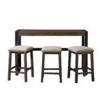 The Caesar Multipurpose Bar Table Set is a remarkable piece for your home. This set can be placed anywhere in your home, from a kitchen nook to a spot behind the sofa in the living room. This set includes one bar height table and three bar stools. The barstools are upholstered with Taupe fabric, and a foam cushion seat; which enhance your comfort when just sitting finishing up work or watching TV. Also, distressed markings can be found throughout the entire set which gives this piece that rustic vibe you have been looking for. Another amazing feature this set offers is a USB and plug outlet. The days of having to stretch your power cord from the wall to your table are long gone! So grab your laptop and set up shop with this amazing bar table set.