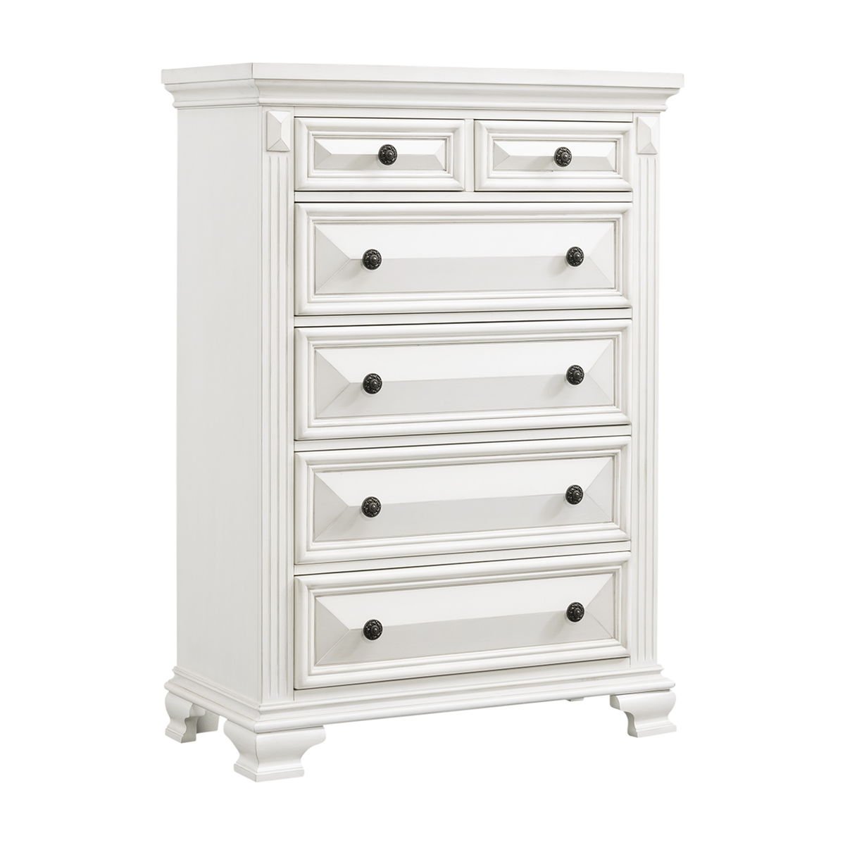 The Calloway Panel Bedroom Set is the bedroom set your home desperately needs! This trio comes with a bed, chest and nightstand. The panel bed features a high profile headboard, adding a little extra drama to your bedroom. The case pieces offer plenty of storage space to properly store away your belongings. The top drawers in the case pieces are felt-lined, helping protect your more delicate belongings. The bottom drawers are cedar lined and also come with a dust proofing layer, adding an extra layer of protection for your belongings. Bevel edges are featured throughout and pair beautifully with the antique black finish, making this transitional bedroom set a staple for years.