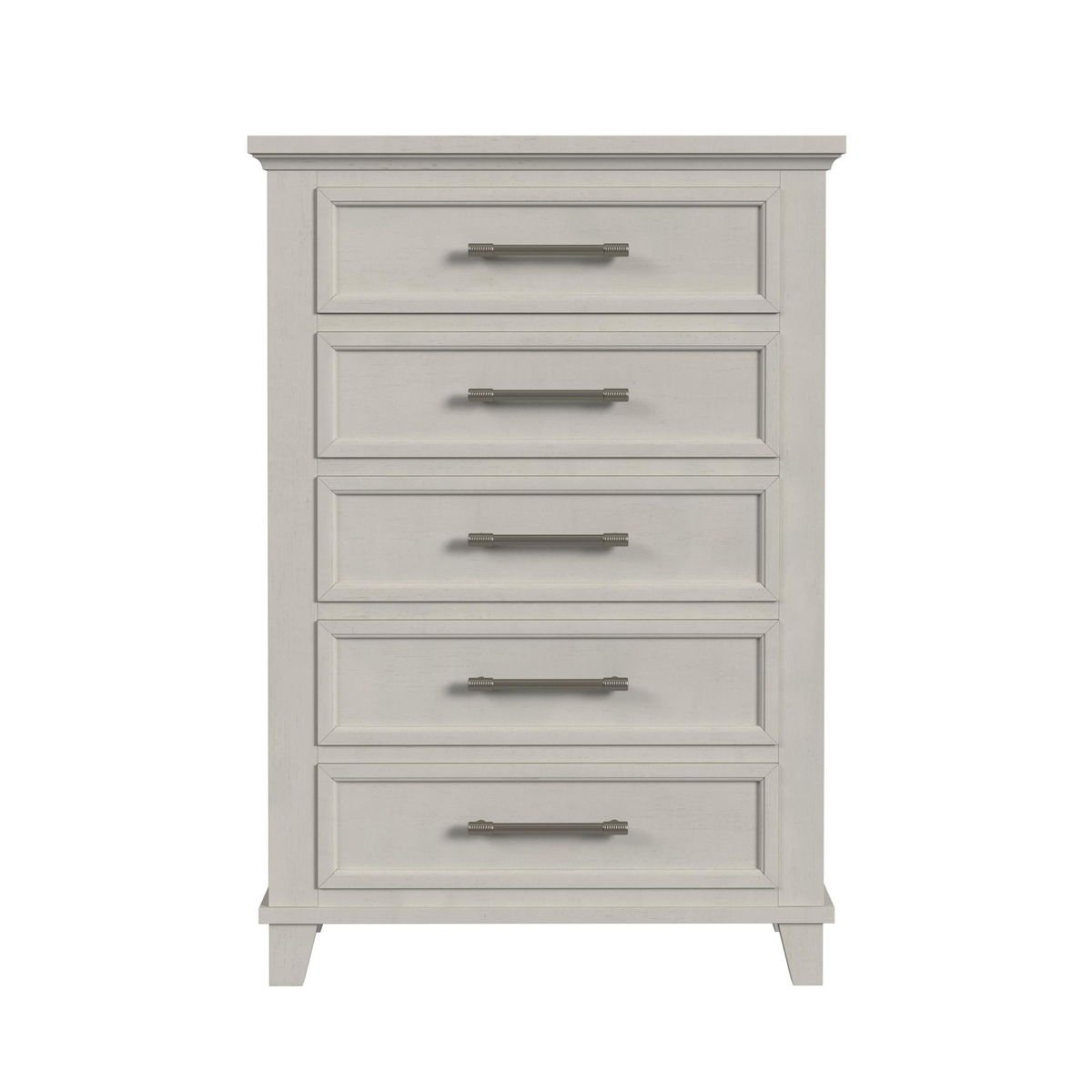 The Canterbury Chest exudes timeless elegance with its sleek smooth finish on rich veneer, offering a sophisticated blend of modern and classic design. Each drawer glides effortlessly and quietly, thanks to the ball bearing drawer glides, ensuring a smooth and luxurious experience every time. Refined brushed nickel handles add a touch of sophistication, elevating the dressers overall aesthetic. Stylish inset panel fronts provide captivating visual appeal, making this chest a stunning focal point in any bedroom. Completing the design are the sophisticated beveled edges that add an extra layer of charm and refinement. The Canterbury Chest is the perfect blend of functionality and elegance, bringing a sense of style and luxury to your living space.