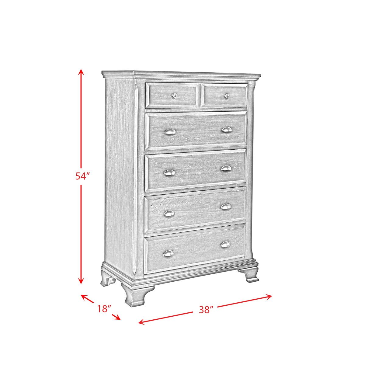 The Canton 5-Drawer Chest is where style and function come together to create one awesome chest of drawers! This vertical chest comes with five, spacious drawers, perfect for neatly storing away all of your belongings. The bottom drawer has a dust proofing layer to help protect your items. Store away your more delicate items in the felt-lined top drawer. The gorgeous cherry finish pairs beautifully with the antique pewter drawer hardware. The traditional design will be a staple in your home year after year.