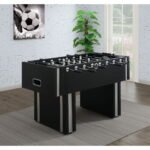 The Clara Foosball Table will be the perfect addition to your game room. This table was created with black laminate veneer that surrounds the table and has accents of a white laminate stripe for a modern look. The wide table legs provides additional stability for those competitive gamers. Eight molded hand grips surround the table allowing for up to four players at a time! This gaming table is perfect for a small family game night. Also, this table ships in one box for ultimate convenience. So grab the kids and get ready for an awesome game night of table soccer!