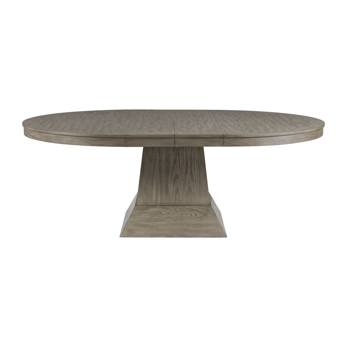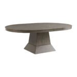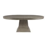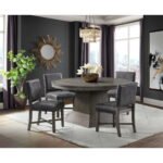 The Collins Dining Table is a subtly striking statement piece that marries traditional and modern style seamlessly. Solidly crafted of rubberwood and MDF, the Collins flaunts a unique round table top with a chunky pedestal base. Finished in a gray with wood grain detailing throughout. Extend your welcome with the 2 12″ inch leaves creating more space for up to six. The “can-go-with-anything” finish and flexible seating design makes this table perfect for your dining room or breakfast nook space.