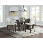 The Dapper 5PC Rectangular Counter Height Dining Set is going to look fantastic in your home! This set includes a table and four side chairs. This dining room staple comes with a glass table top, instantly adding a chic style to your home. The transitional pedestal base pairs perfectly with the glass table top and will be a style you never tire of in your home. The chairs are dressed in a cream, upholstered fabric. The dark, walnut finish base pairs beautifully with the cream upholstery, creating a transitional look that will never go out of style. You’ll stay plenty comfy during those long dinners thanks to the foam cushion seat and back. Add this set to your home today for a look you’ll love coming home to, day after day!