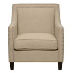 The Erica Chair boasts a refreshing combination of contemporary design with a touch of vintage flare. Its clean lines, low back, and straight edge arms are accented by nail head trim and dressed in a fashionable fabric upholstery.