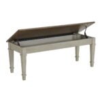 Bring farmhouse charm and functionality to your dining room with the Farmington Storage Dining Bench. This bench is finished in a beautiful two-tone design of medium brown and washed stone. It features a storage compartment for easy access to essentials while you gather around the table with family and friends. Upgrade your dining experience with this stylish dining bench that combines traditional design with modern convenience.