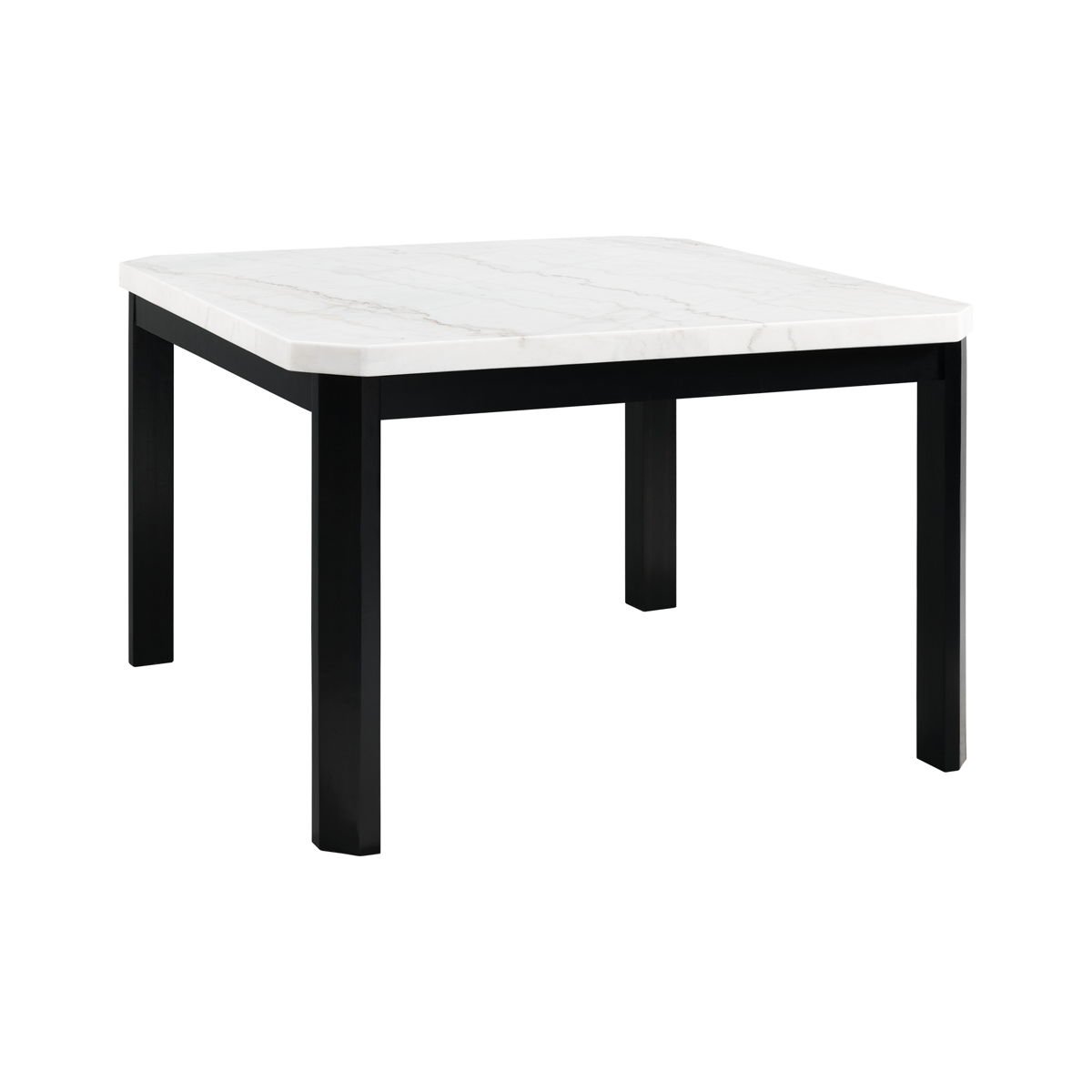 The Francesca Dining collection is the perfect addition to your dining room. This set includes a table and four side chairs. The square dining tabletop features elegant, natural white marble which is a dining table classic. The chic, black finish of the table base is a perfect pairing with the marble top. For seating, faux leather beautifully wraps each chair and is simple to clean. Polished, chrome nail head trim lines the outer edges of each chair for a chic flair. Order this amazing set for your dining room today!
