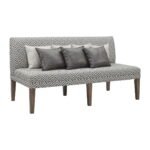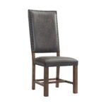 The Dining Set will look fantastic in your home! This table is perfect for entertaining several people thanks to not one, but two removable, extension leaves. With both leaves in, the table can easily go from 84″ wide to 108″ wide; giving you more than enough elbow room. This standard height table has a double pedestal base, instantly adding extra flair to this already stylish set. These chairs feature a faux leather upholstered seat and back in a rich, chocolate color. The faux leather is distressed, instantly adding character and charm to this chair duo. The front legs are curved, adding extra flair to these already stylish chairs. This settee adds a pop to your dining room thanks to its transitional print. This settee includes seven pillows total, instantly dressing up your dining room.