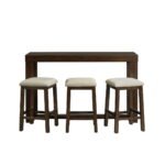 The Hardy Multipurpose Bar Table Set is the ultimate set for your home! This accent group can be placed anywhere in your home, from a kitchen nook to a spot behind the sofa in the living room. Keeping your devices charged while you work won’t be a problem thanks to the USB ports and power strip located on the side of the table. The barstools come with an upholstered foam cushion seat so that you can comfortably enjoy some TV watching while finishing up any extra work. The dark walnut color with cherry undertones is a beautiful finish to this set. Say goodbye to having to haul your work to your local coffee shop and hello to the Drew Multipurpose Bar Table Set!