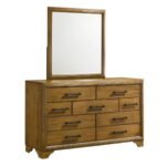 The Harmony Dresser with Mirror epitomizes the charm of transitional style. The neutral, warm, and versatile tone of the piece’s solid and engineered wood framing creates an inviting essence and simplifies pairing with other pieces. Skillfully English dovetailed drawers and protective felt lining in top row drawers mark quality, thoughtful craftsmanship, furthering this piece’s appeal. Sleek metal handles adorn each drawer front, while a framed landscape-oriented mirror lends itself to practical utility. For a stylish, refined addition to your bedroom, the Harmony Dresser with Mirror delivers.