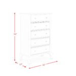 The Jesse 5-Drawer Chest is the perfect addition to your little ones bedroom! This vertical chest comes with five, spacious drawers; perfect for neatly storing away all of your belongings. Raised panel drawer fronts are accompanied by crystal-like drawer knobs, adding an extra element of style to this already stylish set. The classic white finish is easy to match with any existing decor. Bevel edges and arched cabriole feet complete the look of this transitional design.