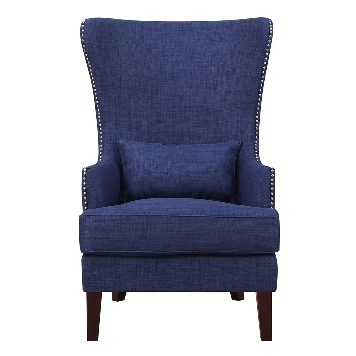 The Kori Accent Chair boasts a charming array of vibrant color options as well as a refined design. Resting on dark espresso legs, the Koris crisp lines, elegant long back and chic studded trim make this a one-of-a-kind upholstered sensation in any home.