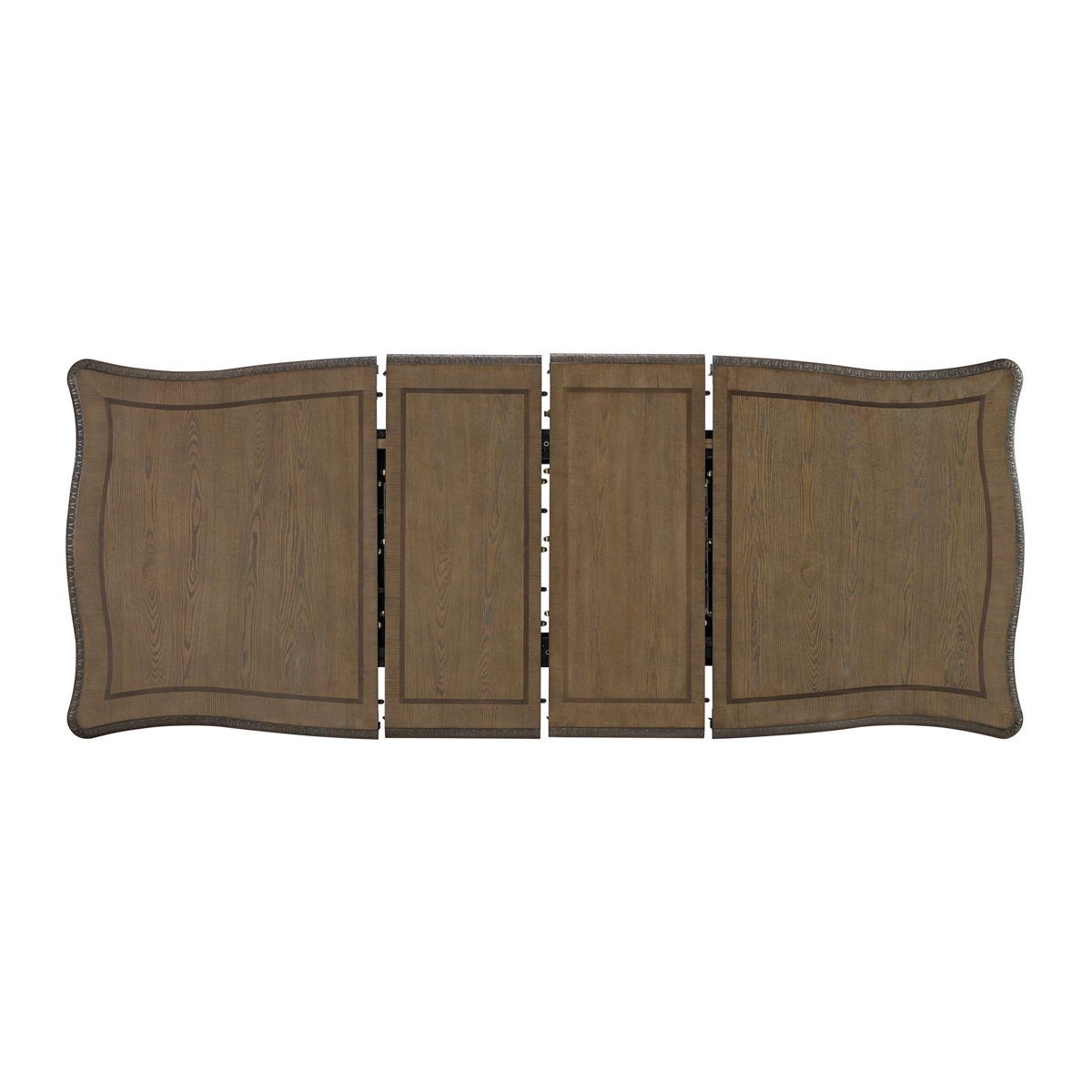 Experience versatile dining with the exquisite Madison Park Dining Set. Expandable from 72″ to 108″ with two 18″ leaves, it accommodates intimate dinners and large gatherings alike. The rich finish exudes warmth and sophistication, complemented by ornate carvings that add timeless charm. Supported by a sturdy double pedestal base, it ensures stable and elegant support. Nailhead trim on the chair back adds refined elegance, while carved legs and arms showcase intricate beauty. Tufted upholstery offers a plush, inviting feel, combining comfort with classic style that never goes out of fashion. Ideal for creating memorable dining experiences in any home.