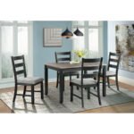 The Martin Brown Dining Set is the perfect addition to your home! The rectangle table design will make it an easy fit in your home. The chairs feature a ladder back design and an upholstered seat in a chocolate fabric. The wire brush, finish on the table base and chairs is truly unique, adding instant flair to this set. The table top contrasts well with the base and will give the updated look your dining room has been craving!