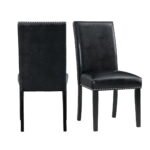 The Meridian Faux Leather Dining Side Chair Set will bring stylish character to your dining room. This set comes with two fully upholstered side chairs, featuring a tall chair back. Faux leather beautifully wraps both chairs and is simple to clean. Polished, chrome nail head trim lines the outer edges of each chair for a chic flair. Upgrade your dining set by switching out your old chairs to the stylish Meridian Faux Leather Dining Side Chairs.
