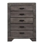 The Nathan 5-Drawer Chest is what rustic farmhouse dreams are made of! This vertical chest comes with five, spacious drawer; perfect for keeping all of your belongings neatly stored away. The top drawer is felt-lined and is a great spot to keep your more delicate items. The bottom drawer features a dust proofing layer to help protect your belongings. The weathered, gray oak finish pairs beautifully with the rustic metal drawer pulls. Sleek, clean lines and bracket feet complete the look of this rustic, chest of drawers.
