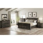 The Park Ridge Sleigh Storage Bedroom Set seamlessly blends ageless, farmhouse style with practical utility in a warm and inviting manner. The bed elegantly curving silhouette creates an impressive focal point, while the footboard built-in storage streamlines organization. Case pieces with spacious and sturdily constructed drawers offer additional storage options, and the felt lined top drawers protect both the drawer and its contents alike. With its timeless elements, textured wood finish, and practical design, the Park Ridge Sleigh Storage Bedroom Set creates a cozy and complete bedroom.
