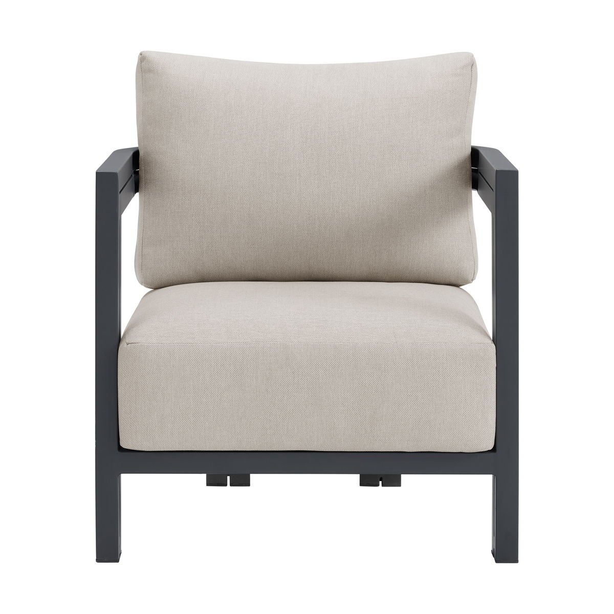 Relax in the sleek simplicity of the Playa Chair. Built with durability in mind, this piece features quality materials optimal for outdoor use, like aluminum framing and weather-resistant olefin upholstery. Detachable cushions with memory foam ease maintenance while simultaneously forming clean lines with streamlined knife-edges. Angular open armrests create a refined, modern look and enhance moments of repose for your guests. For a modern and refined update to your outdoor area, the Playa Chair delivers in both durability and style.
