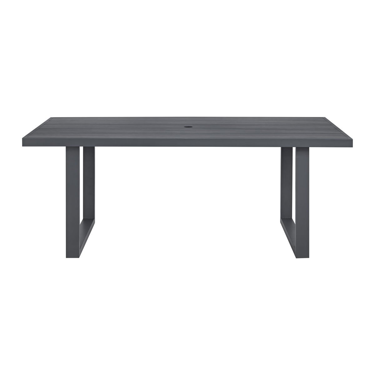 Gather around the welcoming and functional design of the Playa Dining Table. Built with durability in mind, this piece features quality aluminum framing, optimal for resisting the distress commonly accompanied with outdoor use. The versatile black finish is accented by a slatted tabletop designed to prevent water from pooling, while an angular pedestal base forms aesthetic, sleek lines. For a modern and refined update to your outdoor area, the Playa Dining Table in black delivers in both durability and style.