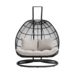 Liven up your outdoor space with the whimsical nature of the Playa Double Swing Egg Chair. Built with a sturdy steel frame ideal for outdoor use and cushions upholstered in weather-resistant olefin, this swing chair is as durable as it is opulent. The woven design of the chair’s frame adds the warm charm of bohemian style, while the chair’s double hanger suspended design permits a relaxing, swinging motion, enhancing repose and safety alike. Modern, durable, and comfortable, the Playa Double Swing Egg Chair is the perfect addition to your patio area.