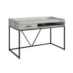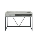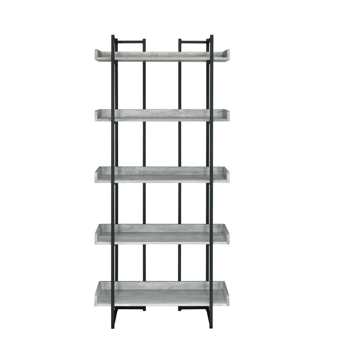 The Preston 2PC Set provides plenty of functionality and style. Includes one desk and one bookshelf. Constructed of sturdy wood and metal. Woodgrain detailing throughout the set adds rustic finish. The desk provides one spacious drawer and two open storage compartments. Black metal secure drawer pull adds textural element to this industrial desk. Desk also features one power outlet for keeping all of your devices charged. The bookshelf features five shelves, providing all the storage you need. This vintage, industrial aesthetic is dynamic and blends well into your modern or contemporary home.