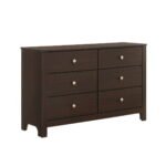 The Sami Dresser offers the perfect blend of style and function for your child’s room. The dark wood finish brings a sophisticated and elegant look, while the spacious drawers provide ample storage for clothing and essentials. Featuring smooth center metal glides, each drawer opens effortlessly for easy access. Designed with youth sizing, this set is ideal for kids’ rooms, adding a touch of refinement. Stylish nickel knobs offer a modern accent, and the raised base with open feet gives the dresser a contemporary feel, making it a practical and chic addition to any bedroom.