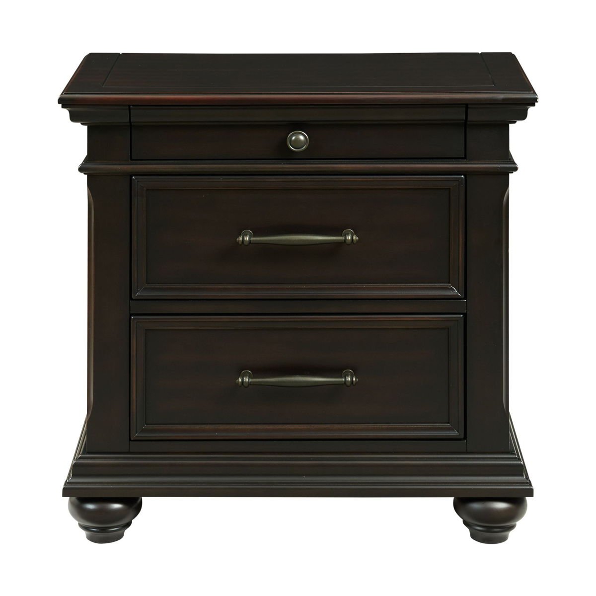 The Slater 3-Drawer Nightstand is going to look amazing in your bedroom! This bedside staple offers three spacious drawers for storage; while the top drawer features felt lining for you to easily store away your more delicate belongings. Another great thing about this nightstand is the two USB ports in the back that will keep your devices charged while you sleep. The dark metal drawer hardware beautifully pairs with the finish, making it a gorgeous combo that will never go out of style. Bevel edges and bun feet complete the look of this transitional style chest. Add this piece to your home today for a look that youll enjoy day after day!