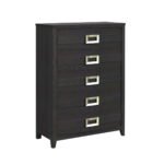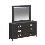 The Tobias Bedroom Set with LED is a sleek and modern addition to your home. Designed with gently sloping horizontal slats that create uniquely rhythmic balance and case pieces with robust silver drawer pulls that effortlessly draw the eye, this set adds a sense of refinement to any space it occupies. Conveniently integrated LED lighting in the headboard adds modern flair, while a nightstand with a convenient USB port simplifies charging your devices. For a collection that is sleek, modern, and stylish, the Tobias Bedroom Set with LED delivers.