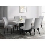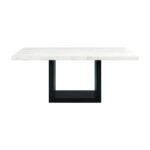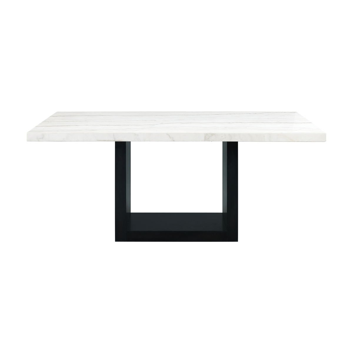 The Valentino Counter Height Dining Table will take your dining room from drab to fab! This dining table features a natural, white marble table top and a cool table base to go with it. The table base features a cut-out design, in a chic finish, adding extra flair to this already stylish table. The rectangular shape allows for multiple seats at the table. This table is not only a show stopper, but all a timeless beauty that will last year after year.