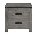 The Wade 2-Drawer Nightstand is the ultimate piece for your home! This bedroom staple comes with two, spacious drawers; perfect for easily keeping all of your bedside belongings neatly stored away. The bottom drawer features a dust proofing layer to help protect your belongings. The drawer pulls and trim along the top of the nightstand are both metal with a black finish. Along the trim on the nightstand are decorative bolts, adding a little extra flair. This nightstand is finished in a neutral gray, making it easy to pair with any existing decor or to find an excuse to completely redo your bedroom. Please note wood grains vary piece by piece and will not look exactly like the picture.