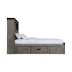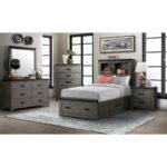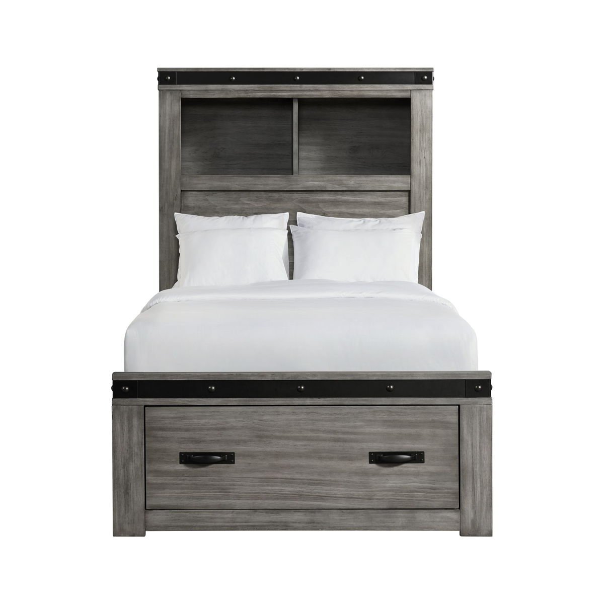The Wade Youth Platform Storage Bed will be a perfect fit for your kiddo! This bed offers plenty of storage options, itll be easy to keep clothes and toys out of sight. The footboard comes with two spacious drawers; while the side rails each have a drawer too. Thats not all of the storage, the headboard comes with shelves so you can easily store your favorite bed time reads. The bed is dresses in a transitional finish, with black metal trim along the fronts of the headboard and footboard. Powder coated metal drawer pulls complete the look of this youth bed, that your kiddo is going to enjoy for years to come!